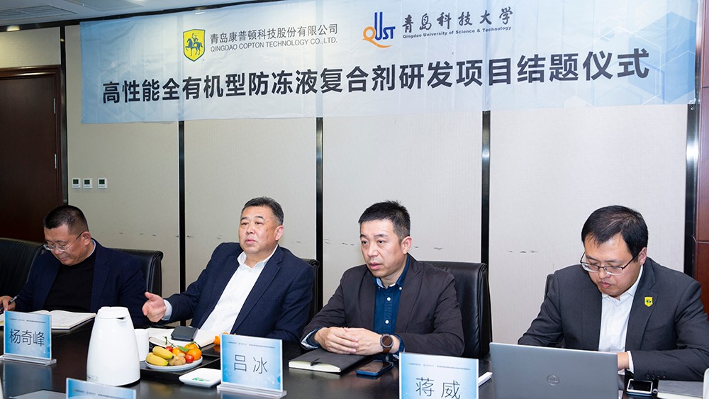 匯報結束后,青島康普頓科技股份有限公司總經理楊奇峰先生對于項目的研究成果表示認可和滿意,項目的圓滿完成標志著校企雙方的“高性能全有機型防凍液復合劑研發”產學研項目從研發階段可以轉向大規模生產,為車輛、設備的冷卻系統提供高效的保護。并期待雙方未來在新領域優勢互補,共創雙贏。