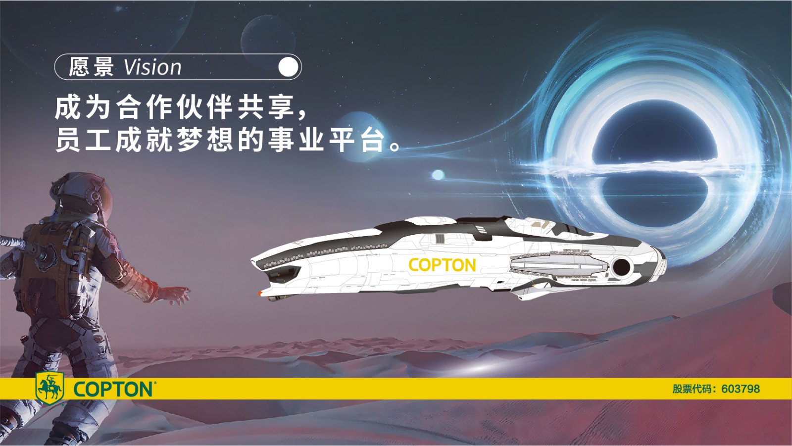 愿景: 成為合作伙伴共享,員?成就夢想的事業(yè)平臺(tái)