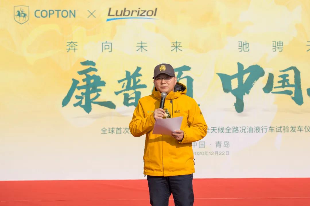 康普頓執行總裁楊奇峰先生與路博潤添加劑亞太區銷售與市場高級總監胡鍔共同宣布行車試驗正式啟程,兩臺試驗車陸續啟動駛出康普頓黃島工業園。